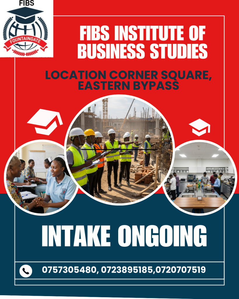 Fountain Gate Institute of Business Studies (FIBS College & Driving School) is a fully accredited institution in Kenya, offering quality training in hospitality, beauty & hairdressing, business & accountancy, and professional driving courses.
